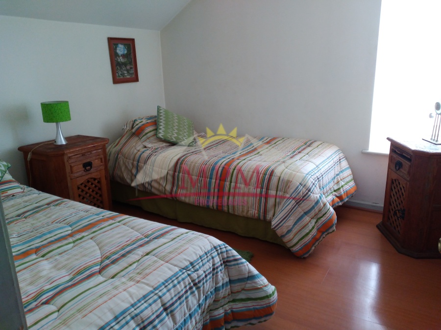 Subida de escala con madera, sala de estar muy cómoda con bodega tipo gatera con posibilidades de ampliación, dos dormitorios muy amplios con capacidad para dos camas cada uno, ambos con closets, todo con piso flotante, baño completo.