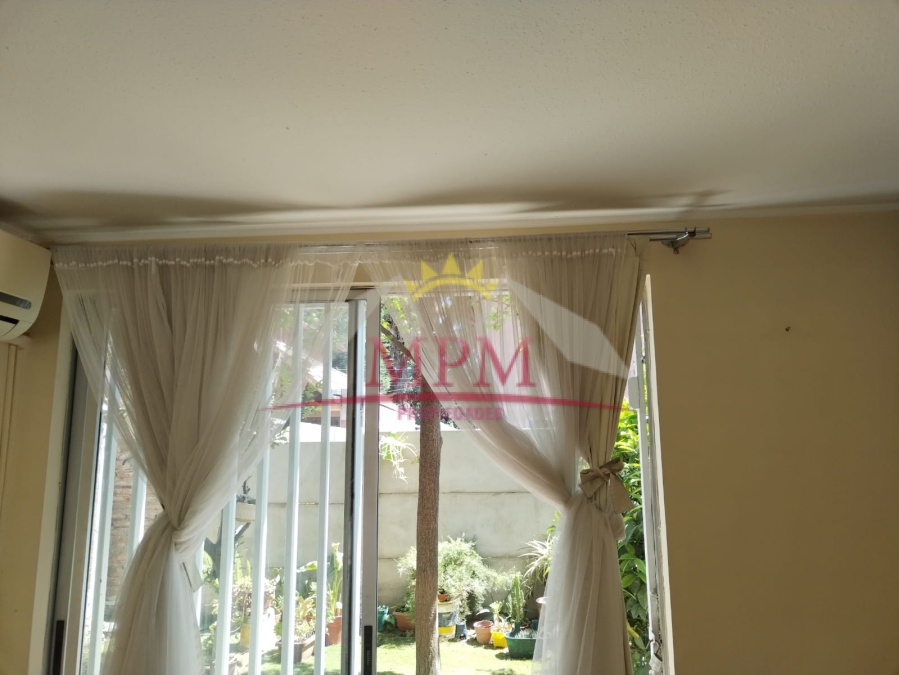 Amplio patio con arboles, estacionamiento para 1 autos, portón automático, gas de bombona de 300 litros, termo solar atmosférico (agua) protecciones en todas las ventanas, una bodega.