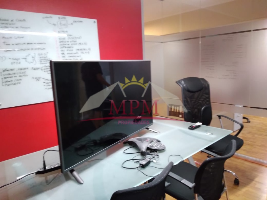 La oficina se encuentra en el cuarto piso, cuenta con dos privados, sala de reunión, 8 estaciones de trabajos, piso flotante, kitchenette muy amplio, 1 equipo de aire acondicionado de 36 BTU.